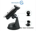 Suporte Universal de Celular para Carro – Ajustável, Rotação 360° e Fixação por Ventosa
